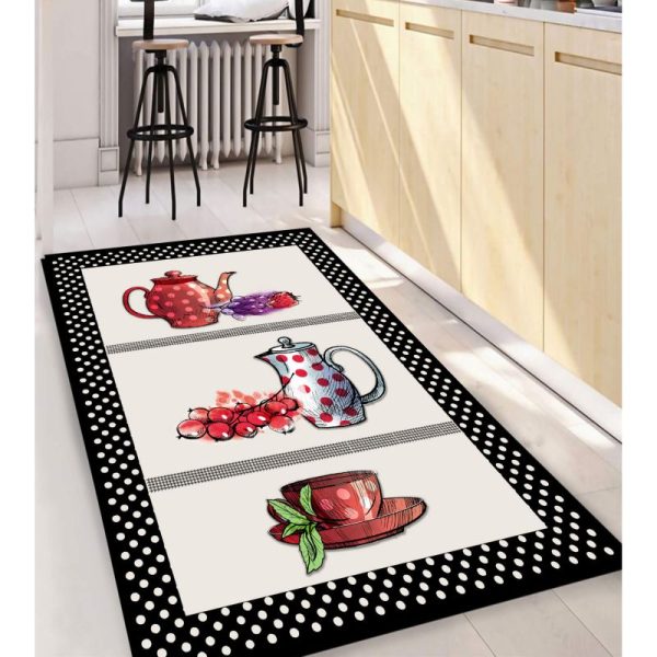 Covor Bucatarie 80×150 Model Buline, Crem/Negru, Antiderapant